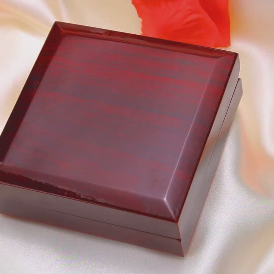 Your piece is lovingly packaged in a complimentary soft touch box for easy gifting. Elevate your presentation by upgrading to the mahogany style luxury box, which features a brilliant LED spotlight.